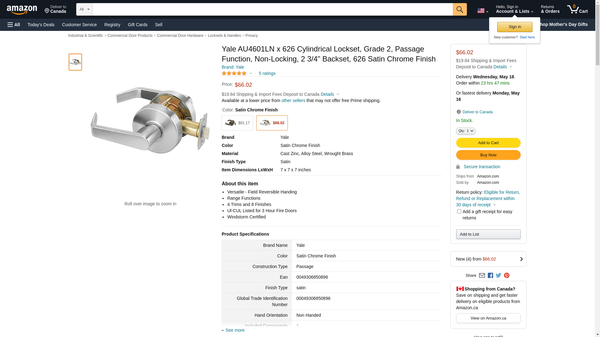 Yale AU4601LNX626 Reversible Handing Cylindrical Lock, Satin Chrome Finish, Fire Listed, Windstorm Certified, 4 Trims, 8 Finishes