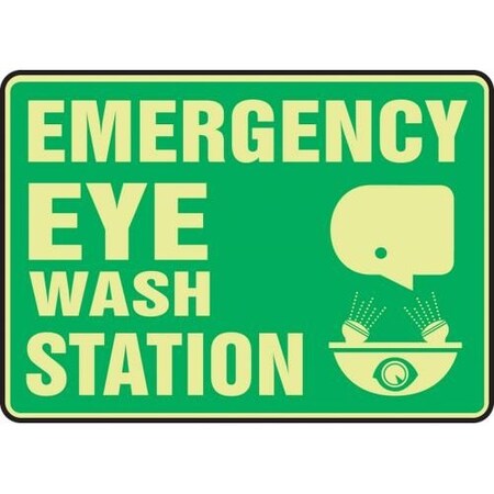 Accuform MLFS560GF Lumi-Glow Flex Adhesive Safety Sign, Legend "Emergency Eye WASH Station" with Graphic, 10" Length x 14" Width x 0.010" Thickness, Glow on Green