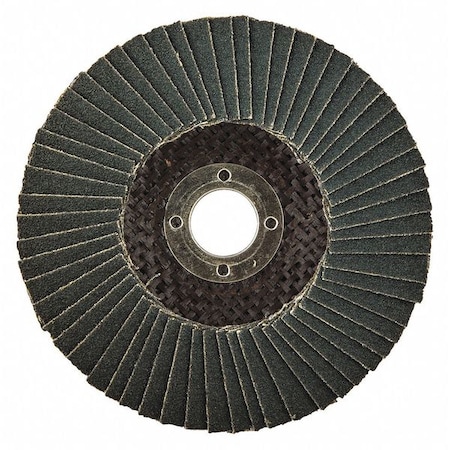 Flap Disc, Abrasive Type Coated, Abrasive Material Zirconia Alumina, Grade Medium, Backing Plate Material Fiberglass, Connector Size 5/8 in, Connector Type Unthreaded Hole, Density Rating Standard, Flap Disc Type Type 29, Overall Diameter 4 in, Series XC1176, Backing Material Fiberglass, Backing Weight X, Grit 60, Maximum Operating Speed 15,300 RPM