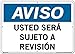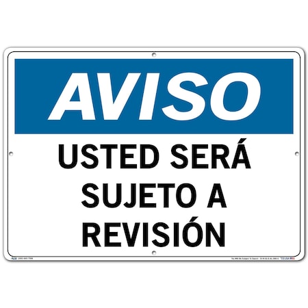 Vestil Notice SignSI-N-42-E-AL-080-S 42 20.5X14.5 Aluminum .080 You Will Be Subject to Search USTED SERÁ SUJETO A REVISIÓN