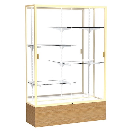 Waddell Reliant Mirror Back Display Case, 48W by 72H by 16" D, Champagne Gold Finish with Autumn Oak Base