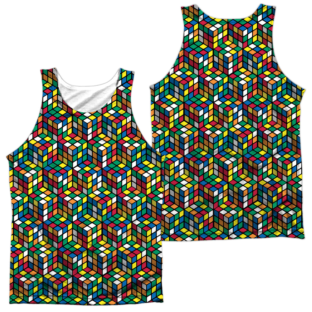 Trevco RBK115FB-TKPP-1 Rubiks Cube & Cube Stack Front & Back Print Adult Polyster Tank Top, White - Small