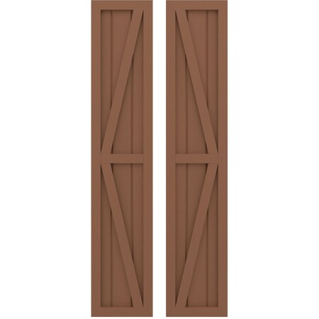 Ekena Millwork ARW102BF311X44BTH Americraft Three Exterior Real Wood Two Equal Panel Framed Board-n-Batten Shutters w/Double Z-Bar (Per Pair), 10 1/2"W x 44"H, Burnt Toffee