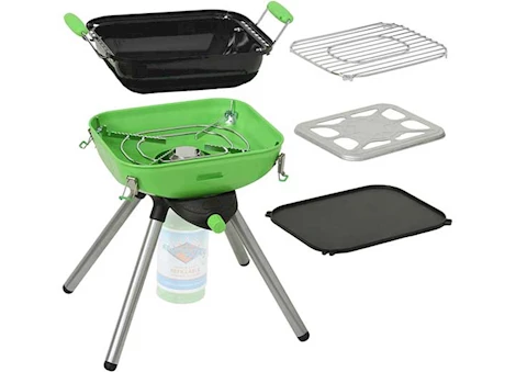 - TAKE ANYWHERE - Use as a camp stove or take along on backpacking trips, 9 1/2" x 12" cooking surface provides lightweight, efficient cooking while removable legs make for easy storage and transport