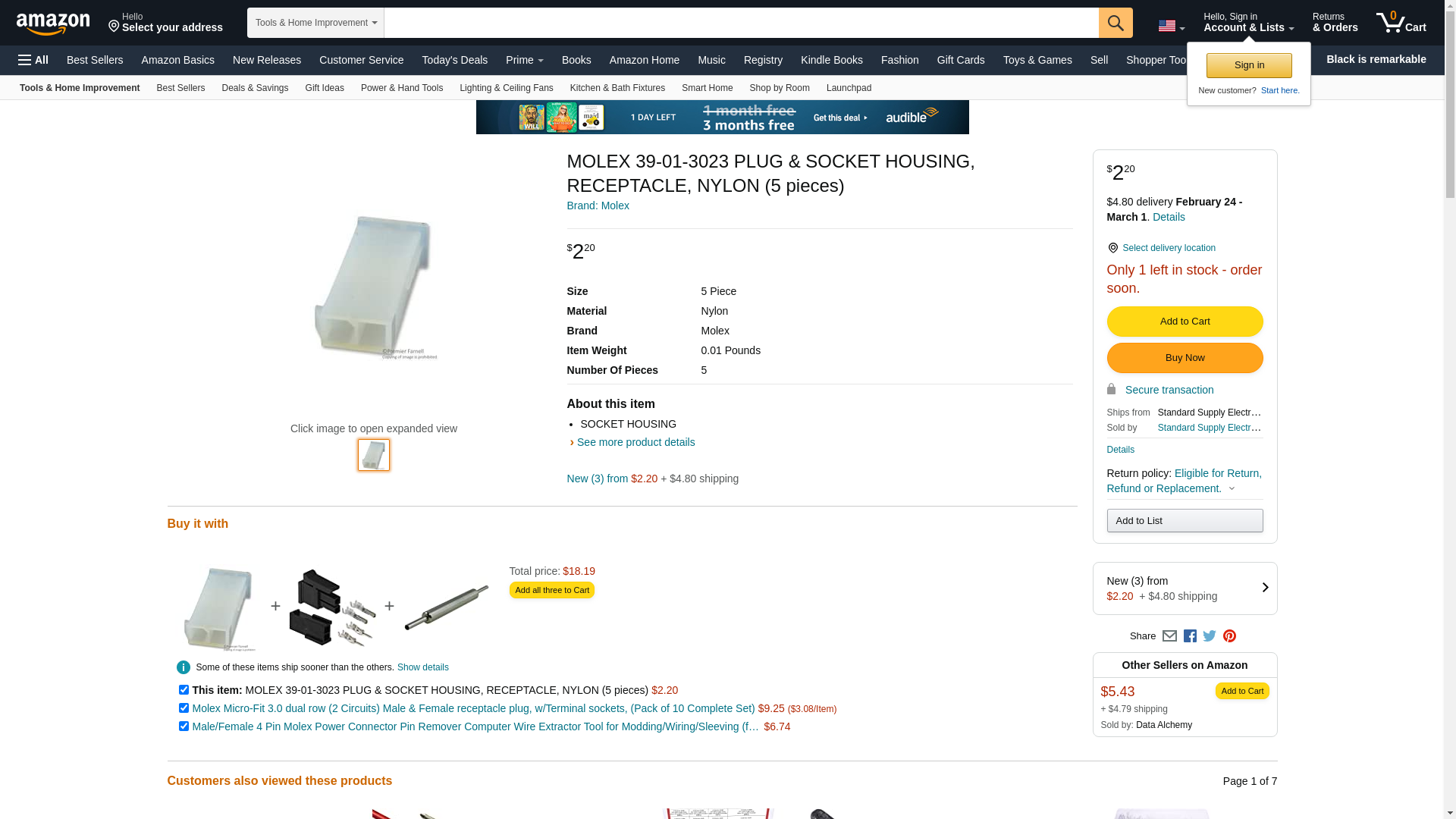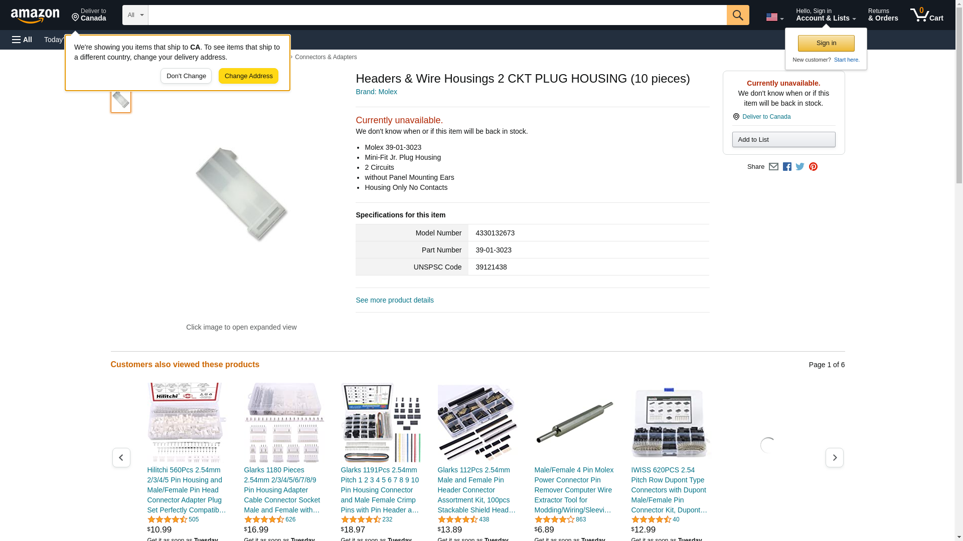 | Waldom | MOLEX 39-01-3023 | 500 | 78867 | 1 | 500 @ $0.11, 2700 @ $0.10, 5600 @ $0.10, 9000 @ $0.09 |