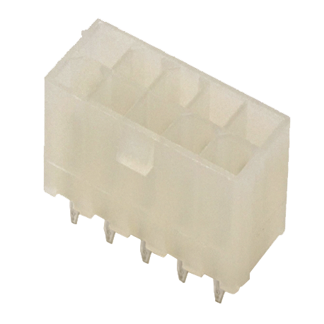 | Feature | Manufacturer: Molex Product Category: Headers & Wire Housings RoHS: Product Type: Header Assemblies Type: Pin Header Series: Pitch: 4.2 mm Number of Positions / Contacts: 10 Number of Rows: 2 Contact Gender: Pin (Male) Contact Plating: Tin Housing Material: Nylon Termination Style: Through Hole Mounting Style: - Mounting Angle: Vertical Contact Material: Brass |