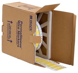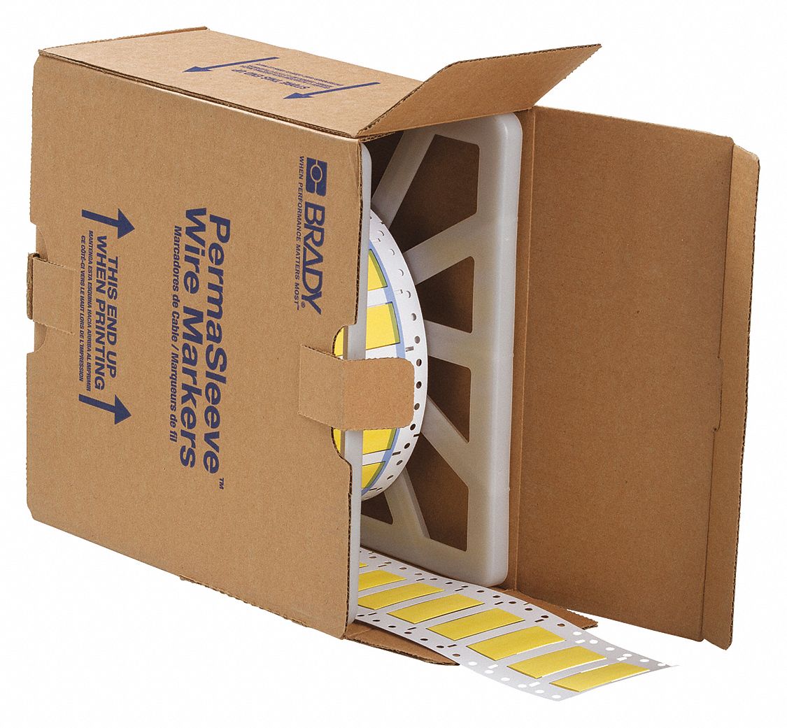 Double Sided PermaSleeve Polyolefin Wire Marking Sleeves, Yellow, 0.5" Dia x 2" W, Roll of 500 Each. 3:1 heat shrinkable sleeve fit snugly around wires for maximum insulation protection and permanent identification. Fade-resistant and smudge-proof for superior aesthetic appearance. Cold resistant and flame-retardant with an operating temperature of -67°F to 275°F (-55°C to 135°C). Meets SAE-AMS-DTL-23053/5C (Class 1), SAE-AS-81531, MIL-STD-202; RoHS Compliant; and UL Recognized. For use with BBP72 Label Printer, Brady IP Series Label Printer, BradyPrinter i5100 Industrial Label Printer, BradyPrinter i7100 Industrial Label Printer, Brady THT 3" Core Printers