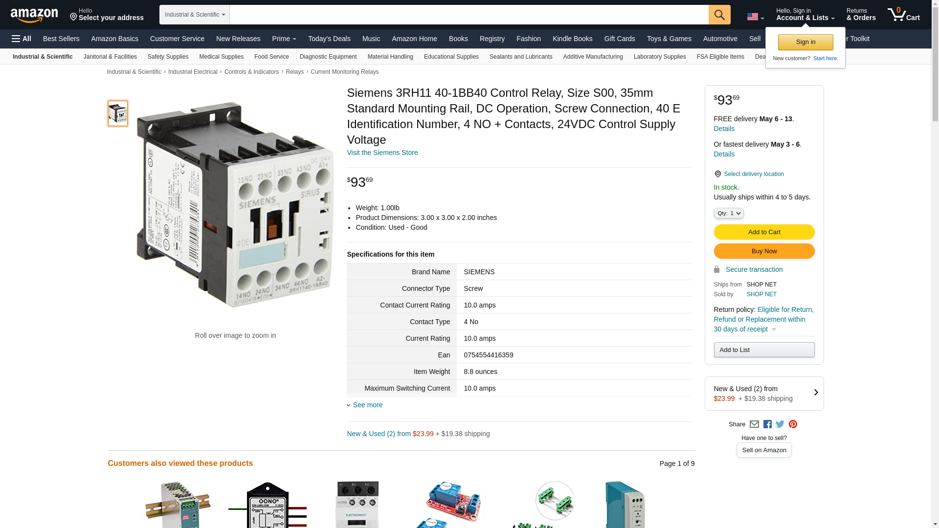 | Onlinecomponents.com | 3RH1140-1BB40 | 1 | 1 |