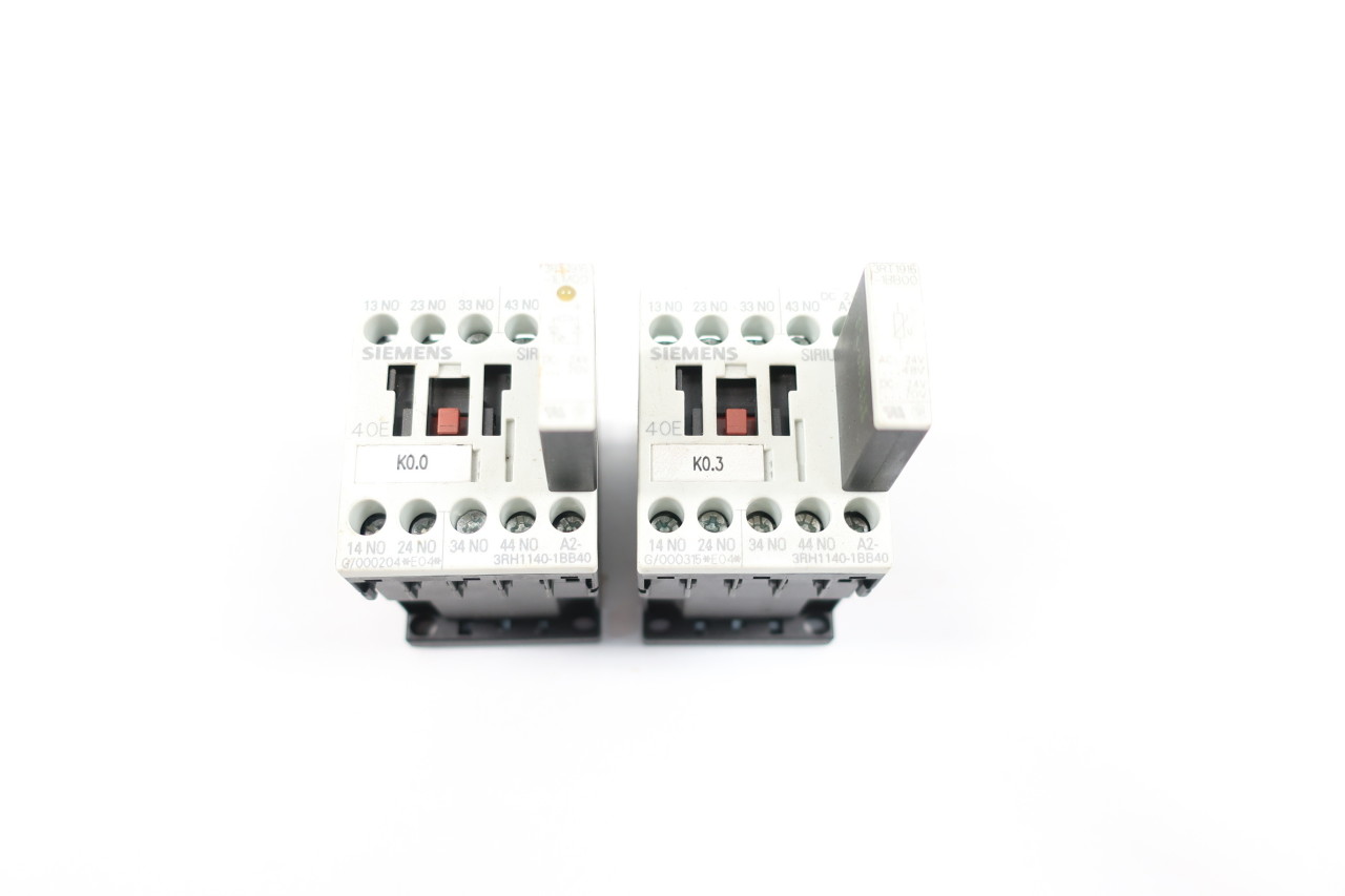 Siemens 3Rh1140-1Bb40sirus Auxiliary Contactor Relays00 Sizeinsulation Voltage: 690V Accontrol Supply Voltage: 24V Dcauxiliary Contact Configuration: 4 N.O. Contactsoperating Current: 10 Amp @ Ac/Dc-12 Max.Screw &Amp; Snap On Mounting Typescrew-Type Terminal Electrical Connection