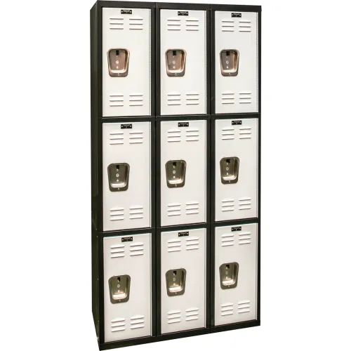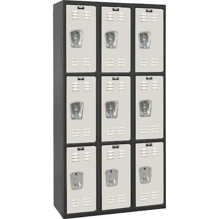 Hallowell U3282-3MP Black Tie Locker Triple Tier 12x18x24 9 Doors Unassembled, Black/Light Grey