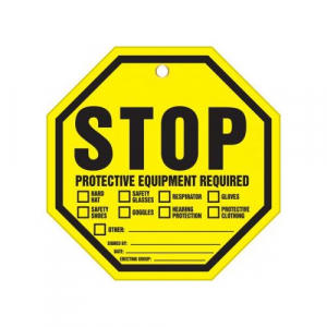 Accuform TAP807CTM PF-Cardstock Octo-Tag, Legend "Stop Protective Equipment Required", 8" Octagon Shape, 0.010" Thickness, Black on Yellow (Pack of 5)