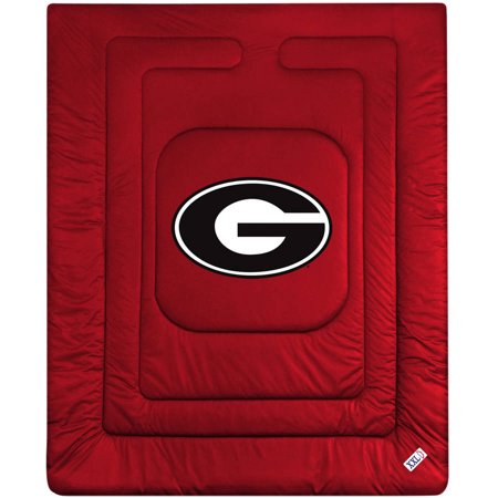 <br /> <b>NCAA University of Georgia Locker Room Comforter:</b> <ul> <li>Available in multiple sizes</li> <li>Covers are 100 percent polyester jersey on top and bottom side</li> <li>Filled with 100 percent polyester batting</li> <li>Logos are screenprinted bright and bold on a team-colored jersey comforter</li> <li>Machine washable in warm water</li> <li>Tumble dry on low heat</li> </ul>