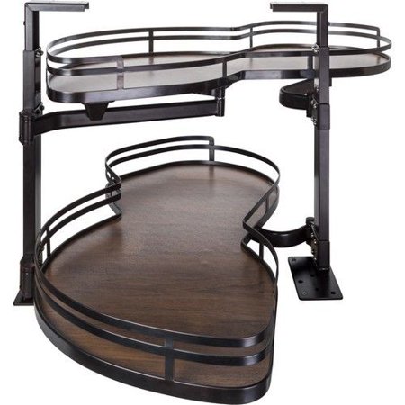 <li>Blind Corner Swing Out Left Handed Unit</li> <li>Minimum 21" opening for Frameless or Face Frame Cabinets</li> <li>Wood Textured solid non slip bottom shelves with brushed oil rubbed bronze trays ships complete with installation instructions</li> <li></li>