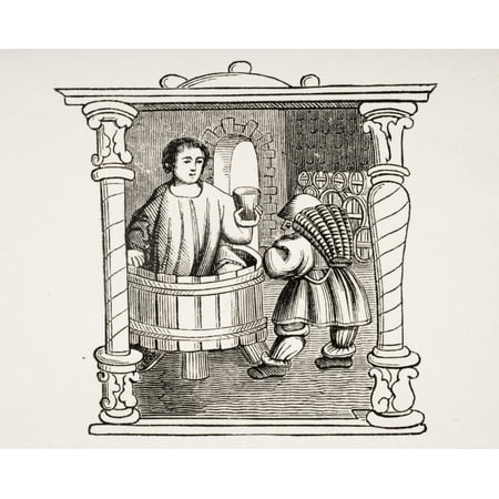 Ken Welsh / Design Pics Stretched Canvas Art - Treading Of The Grape. 19Th Century Reproduction Of Miniature In 16Th Century Prayer Book Calendar - Medium 17 x 13 inch Wall Art Decor Size.