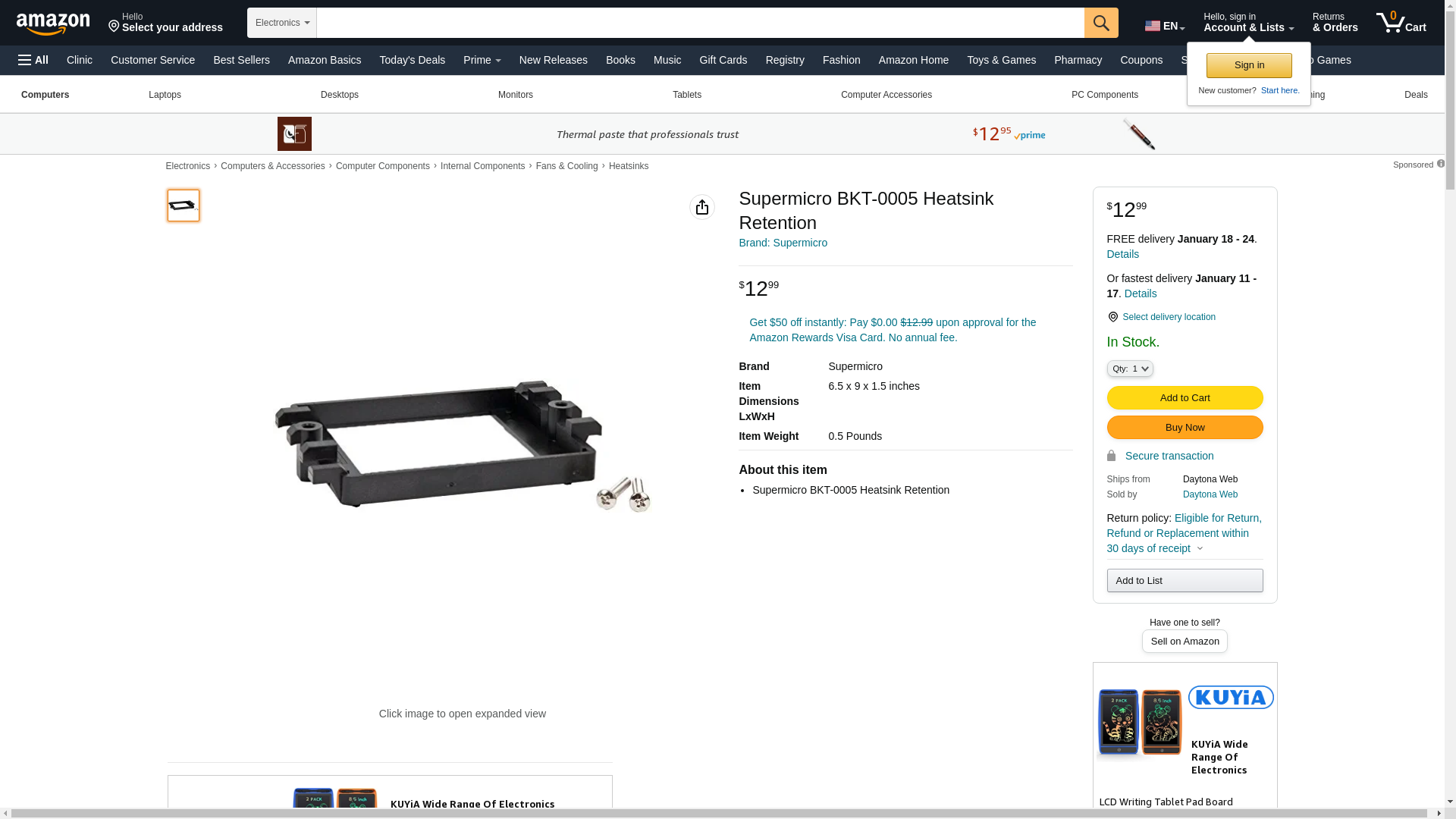 - Supermicro BKT-0005 Heatsink Retention