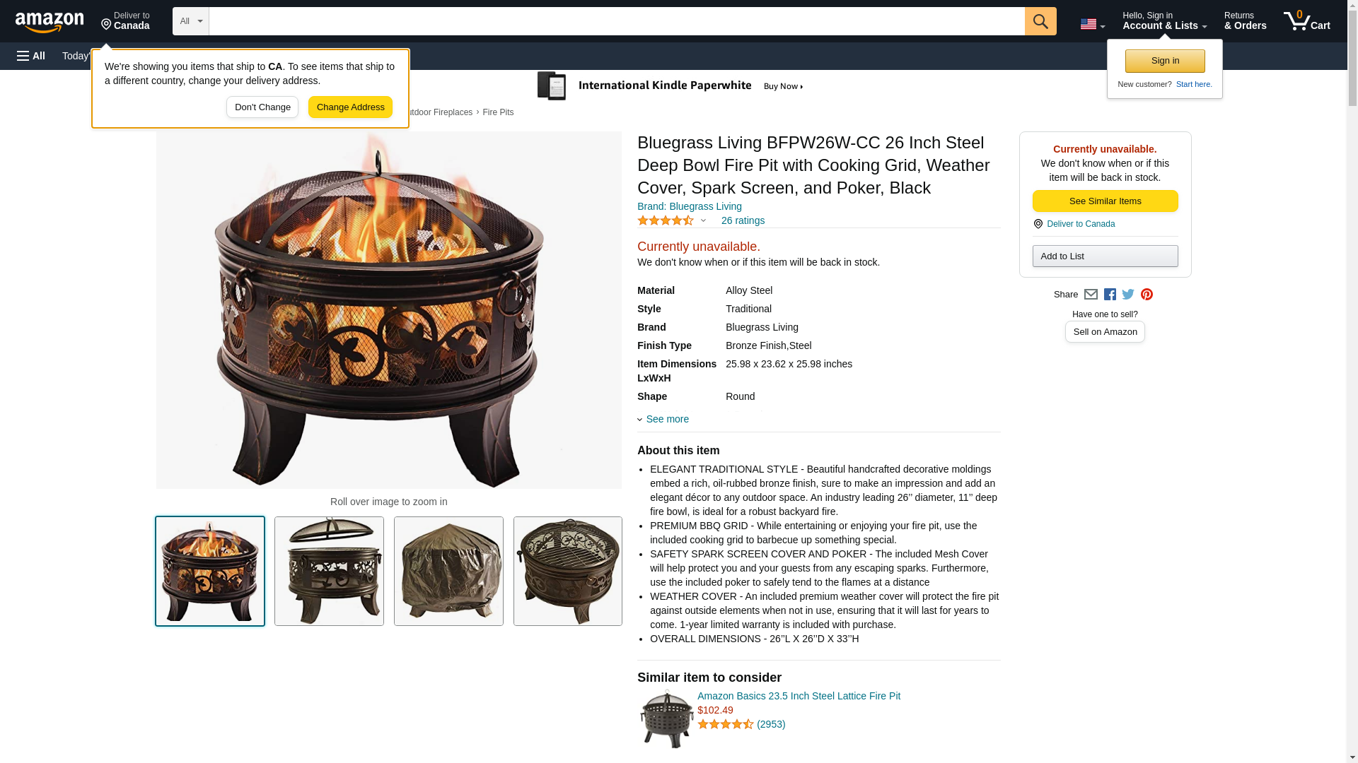 Bluegrass Living 26 Inch Steel Deep Bowl Fire Pit with Cooking Grid, Weather Cover, Spark Screen, and Poker - Model# BFPW26W-CC