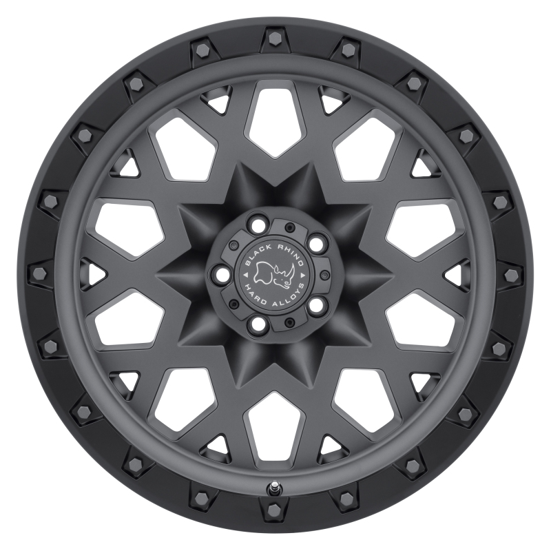 - BLACK RHINO SPROCKET 20x9.5 5/127 ET-18 CB71.6 MATTE GUNMETAL W/BLACK LIP EDGE (GUNMETAL BOLTS)