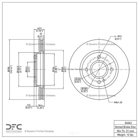 Dynamic Friction Company Front Disc Brake Rotor 600-54063 (1) For 2011-2019 Ford Fiesta, 2016-2017 Ford Figo