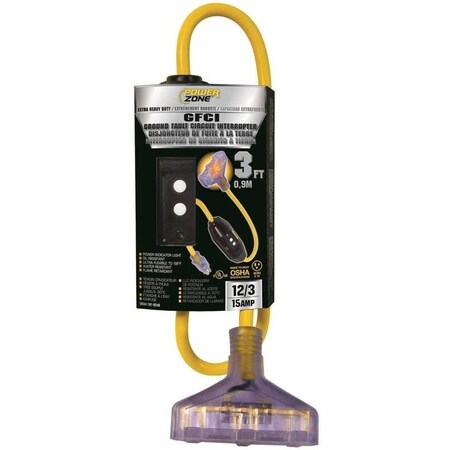 POWER ZONE ORG320803 Tap Three Outlet GFCI, 3-Feet