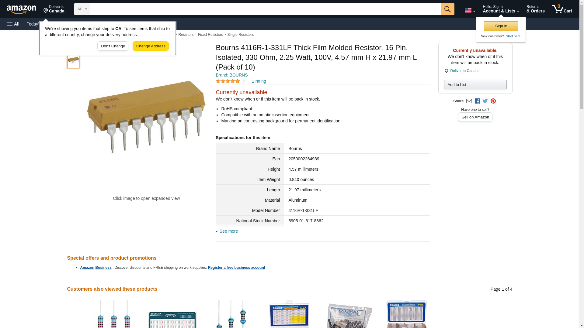 Bourns 4116R-1-331LF Thick Film Molded Resistor, 16 Pin, Isolated, 330 Ohm, 2.25 Watt, 100V, 4.57 mm H x 21.97 mm L (Pack of 10)