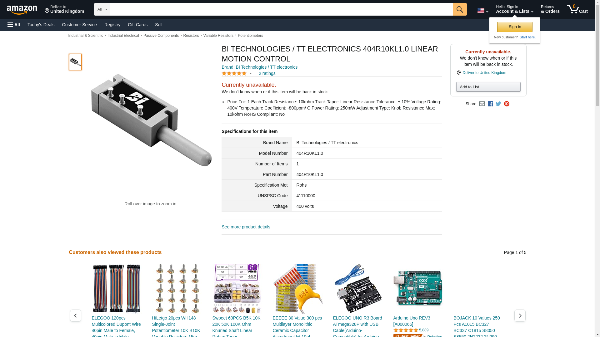 BI TECHNOLOGIES / TT ELECTRONICS 404R10KL1.0 LINEAR MOTION CONTROL