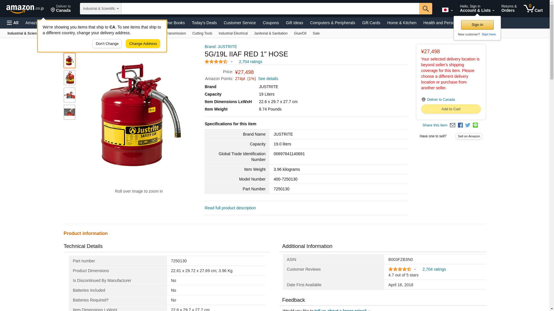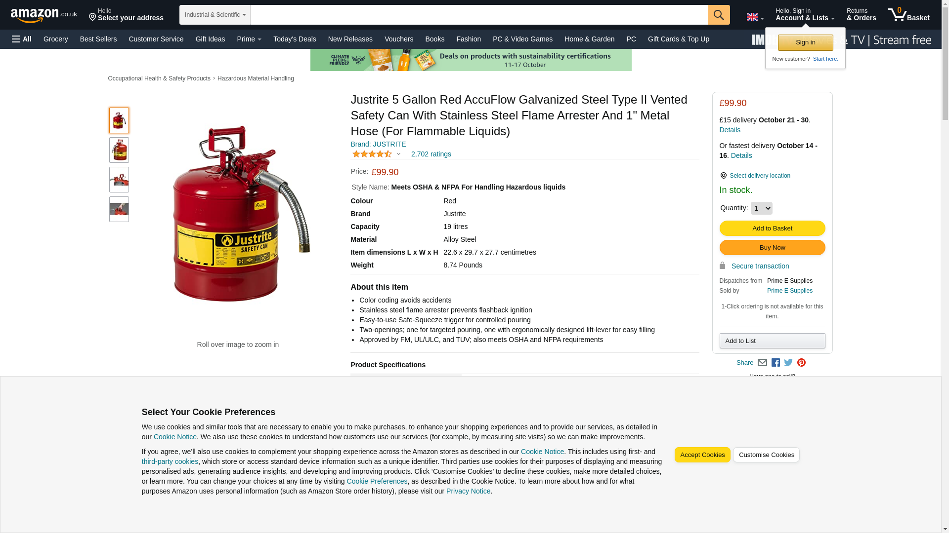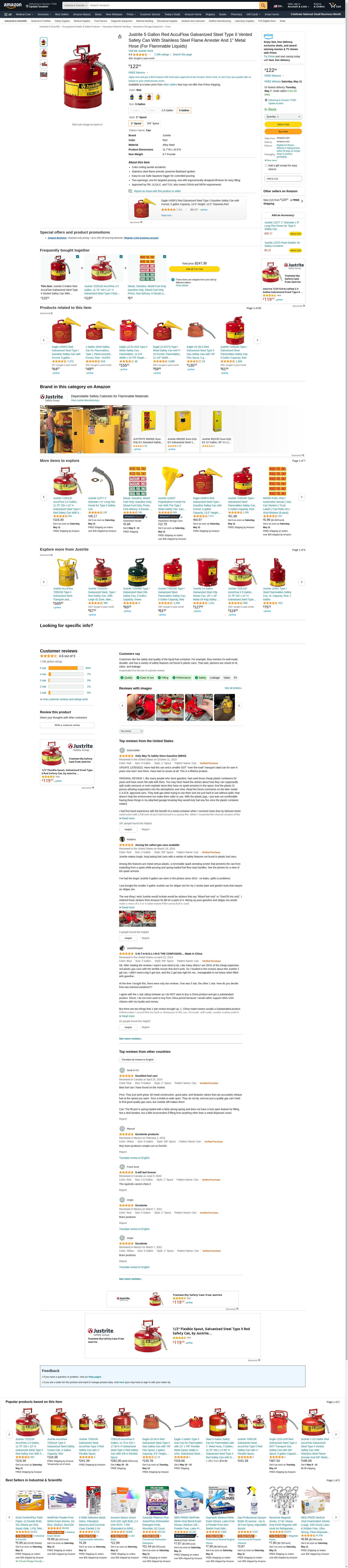 | Feature | Justrite 5 Gallon AccuFlow Can With 9" Metal Hose For Use With Flammable Liquids |