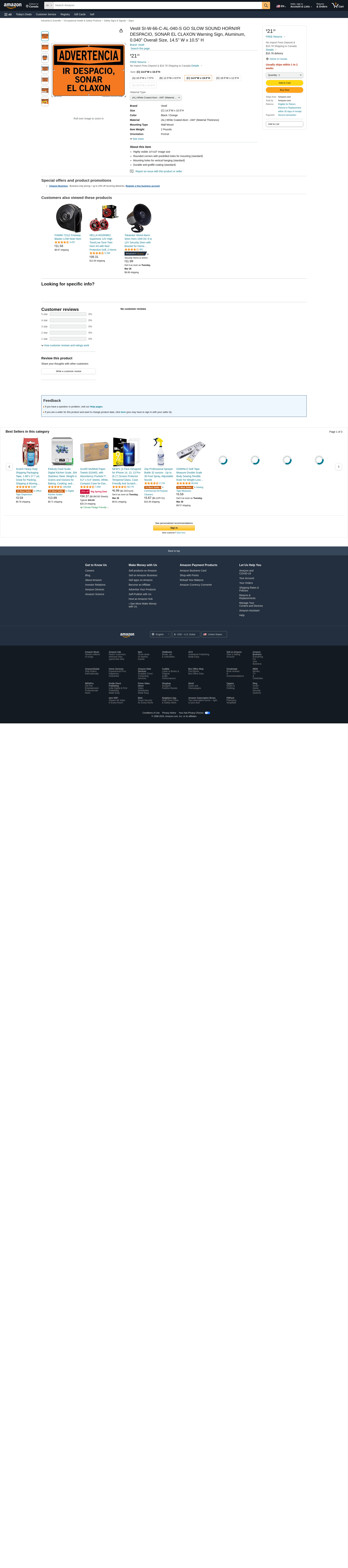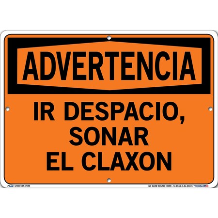 Vestil SI-W-66-C-AL-040-S GO SLOW SOUND HORN/IR DESPACIO, SONAR EL CLAXON Warning Sign, Aluminum, 0.040" Overall Size, 14.5" W x 10.5" H