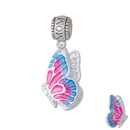 Large Translucent Hot Pink & Blue Flying Butterfly - Mom Charm Bead Hanger. Silver Tone Charm. Charm size is approx. 1.00 x 0.62 x 0.23 inches (HxWxD) including loop. Charm Hanger Bead is approx. 13x10x7 mm (HxWxD) Hole size 5.5 mm. Our Charm Beads are compatible with most Charm Bead Bracelets. Also makes a great charms pendant. Featured charms is an exclusive Delight & Co. design. We are a family owned company for over 35 years in the U.S.A. PLEASE NOTE: Our products are lead safe, but are not intended for children 14 years and younger.