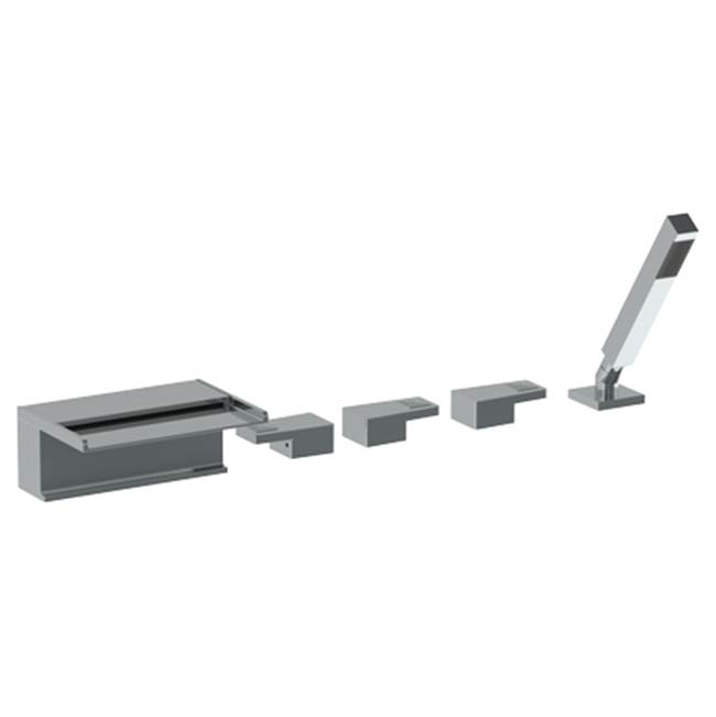 WATERMARK 35-8.1WF-ED3-GP EDGE 5 1/2 INCH THREE HANDLE DECK MOUNT WIDESPREAD WATERFALL ROMAN TUB FAUCET WITH...