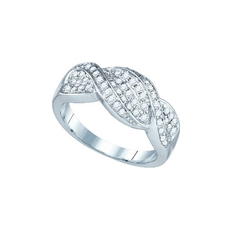 <p><span style="font-size:16px;"><b><u>Description</u></b><br /></span></p> <p><span style="font-size: 14px;">14k White Gold Womens Round Diamond Crossover Band Ring 1/2 Cttw</span></p> <br /> <p><span style="font-size:16px"><u><b>Gemstone Details</b></u></span></p> <p><span style="font-size:14px">1/2 Carats total weight<br /><br />All diamonds are natural and conflict-free in origin<br /><br /><b>Round Diamond</b><br /></span></p> <li>1/2 ct.t.w.</li> <li>I1-I2 clarity</li> <li>H-I color</li> <li>Pave setting<br /><p><span style="font-size:16px"><u><b>Specifications</b></u><br /></span></p><p><span style="font-size:14px">14kt White Gold<br />Widest point width: 7 mm (.28 inches )<br />Width of shank: 2 mm<br />5.48 grams (approximately)<br />Ring size selectable</span></p><p><span style="font-size:11px">Combined diamond weight of 1/2 carats total weight represents a range of 0.46 - 0.58 cts. t.w.</span></p></li>