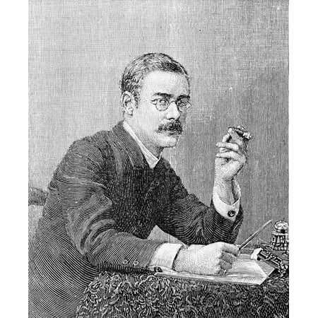 Rudyard Kipling (1865-1936) Nenglish Writer Wood Engraving 1890 Rolled Canvas Art - (18 x 24)