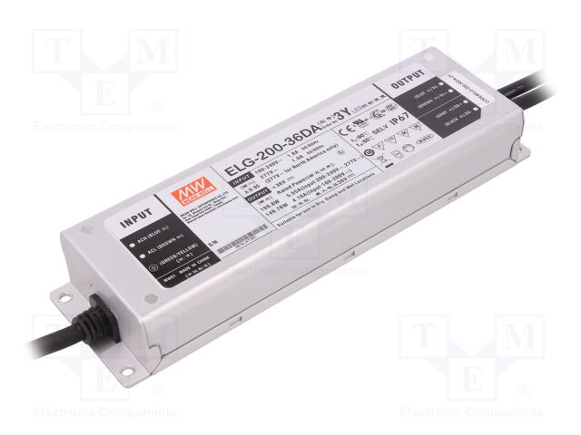 MEAN WELL ELG-200-36DA-3Y | Power supply: switched-mode; Communication: DALI; LED; 199.8W