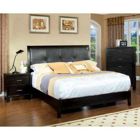 <ul> <li>Set includes: Queen-size Bed, Nightstand, Chest</li> <li>Materials: Solid wood, Leatherette</li> <li>Finish: Espresso</li> </ul>