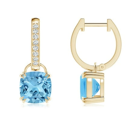 <ul> <li>Cushion Swiss Blue Topaz Drop Earrings with Diamond Accents in 14K Yellow Gold (7mm Swiss Blue Topaz)</li> <li>Approximate Carat Total Weight 3.53 ct</li> <li>Hinged Clip Closure</li> <li>Free Certificate of Authenticity and 30-Days Easy Returns.</li> <li>*Get a FREE Gemstone Pendant in Silver w/o Chain</li> </ul>