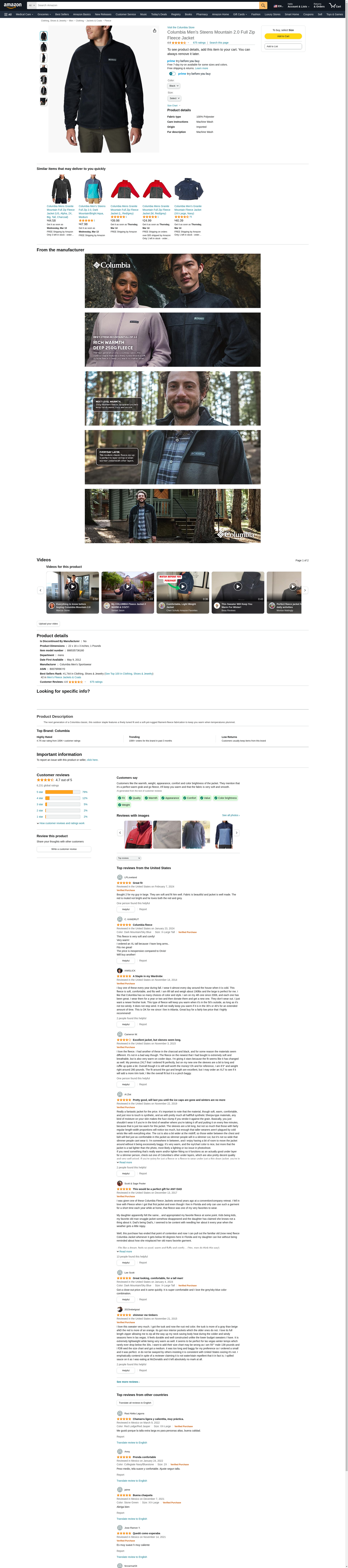 - SOFT FABRIC: This Columbia Men's Steens Mountain Full Zip 2.0 Fleece Jacket is crafted of ultra-soft 100% polyester MTR filament fleece for the perfect amount of warmth