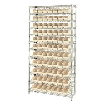 Quantum Storage Systems WR12-103IV 12-Tier Complete Wire Shelving System with 77 QSB103 Ivory Bins, Chrome Finish, 18" Width x 36" Length x 74" Height