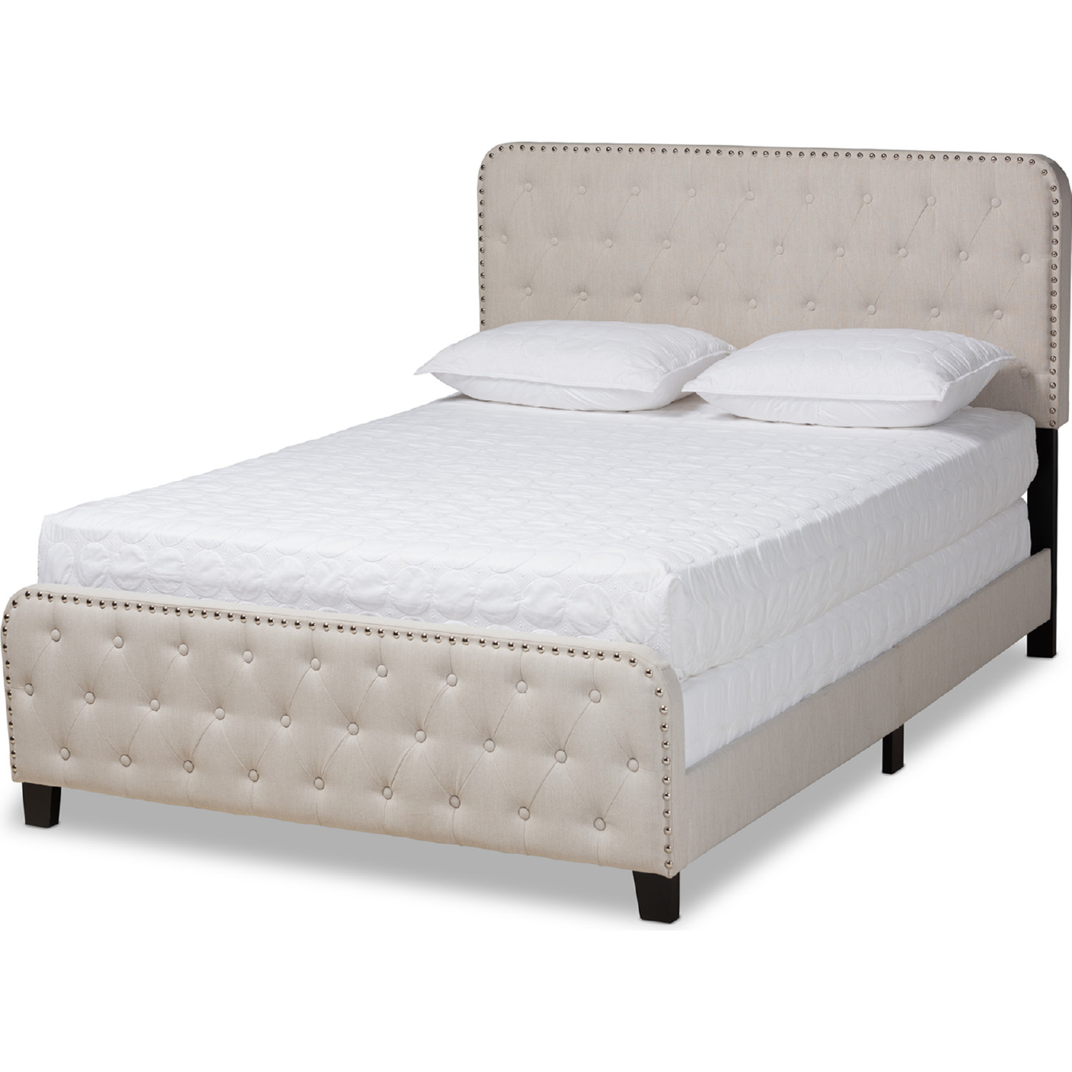 Baxton Annalisa-Beige-Queen Annalisa Queen Panel Bed in Tufted Beige Fabric