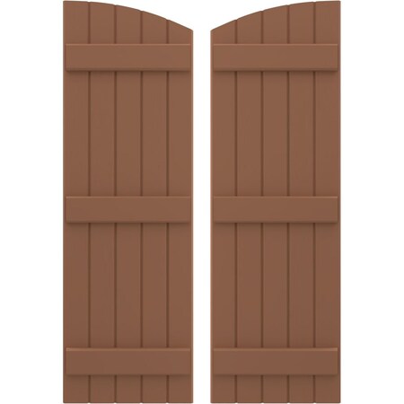 Ekena Millwork ARW401BE518X51BTH Americraft Five 3 Exterior Real Wood Joined Board-n-Batten Shutters w/Elliptical Top (Per Pair), 17 1/2"W x 51"H, Burnt Toffee