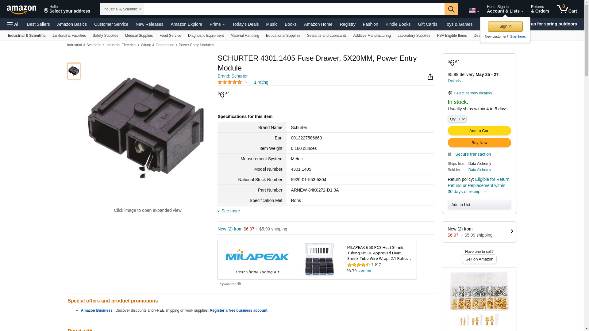 | Feature | SCHURTER 4301.1405 FUSE DRAWER, 5X20MM, POWER ENTRY MODULE |