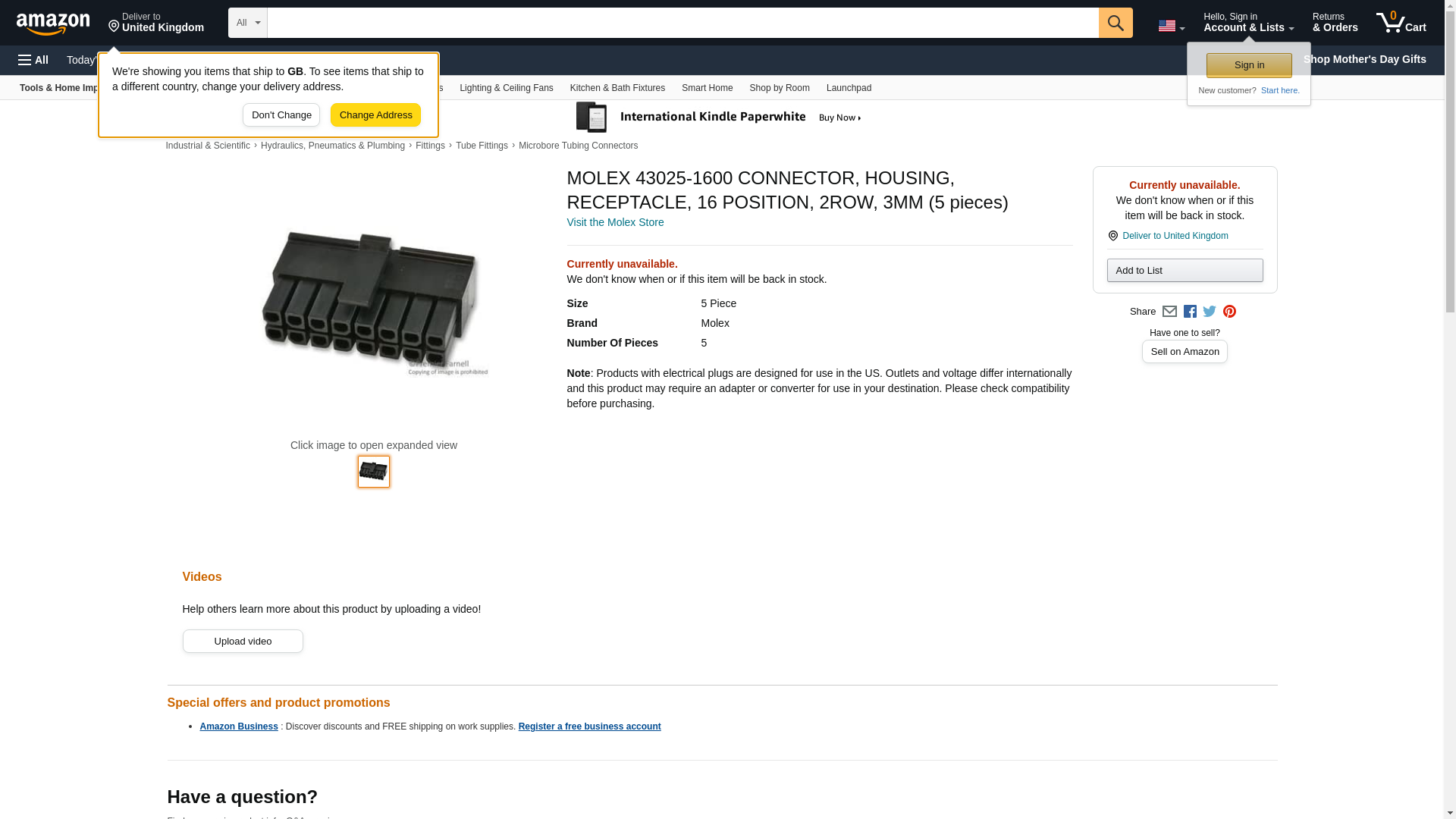 | Waldom | MOLEX 43025-1600 | 200 | 35361 | 1 | 200 @ $0.33, 850 @ $0.32, 1700 @ $0.31, 3300 @ $0.31, 4500 @ $0.30, 27000 @ $0.27 |