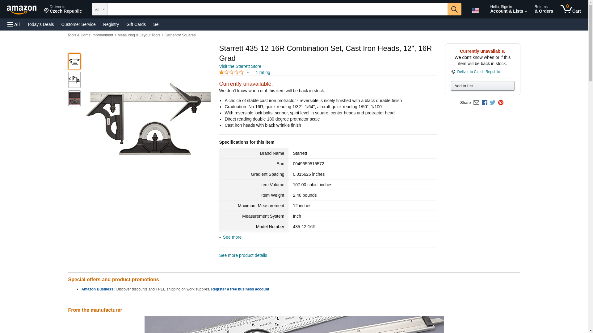 Starrett Square Set, Combination, 12In - 435-12-16R