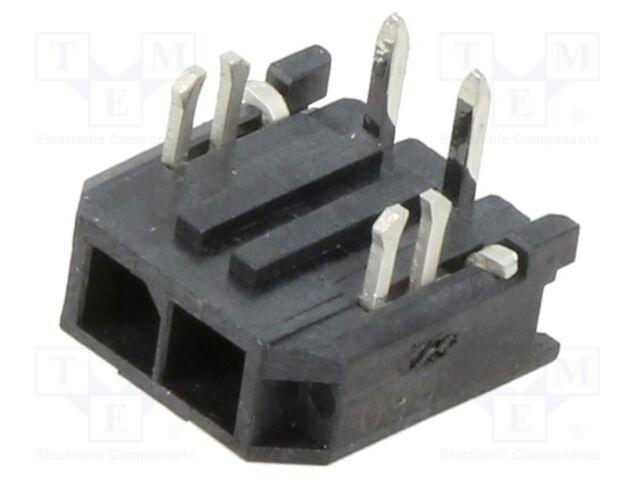 CONNECTOR, HEADER, 2POS, 1ROW, 3MM; Connector Systems:Wire-to-Board; Pitch Spacing:3mm; No. of Rows:1Rows; No. of Contacts:2Contacts; Contact Termination Type:Through Hole Right Angle; Product Range:Micro-Fit 3.0 43650 Series RoHS Compliant: Yes