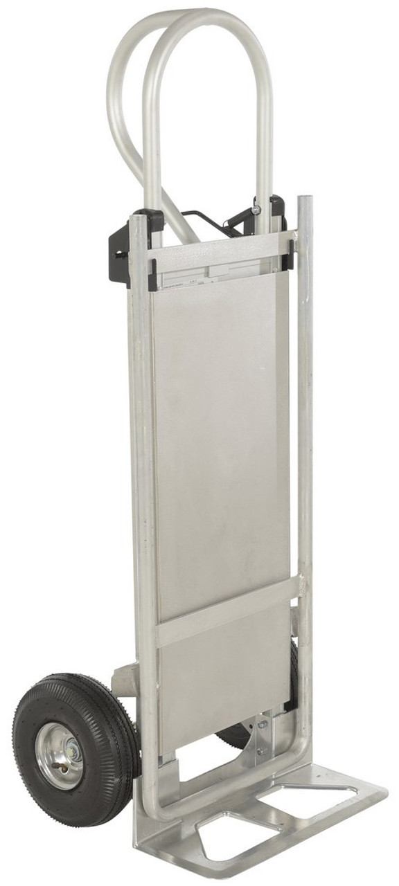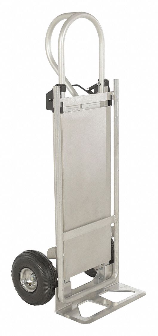 Vestil Alum-P-TB Hand Truck with Folding Platform Dolly, Pneumatic Tires, 19-3/4" Width x 48" Length x 50-3/4" Height, 7-1/2"x14" Nose Plate, 500 lb. Capacity