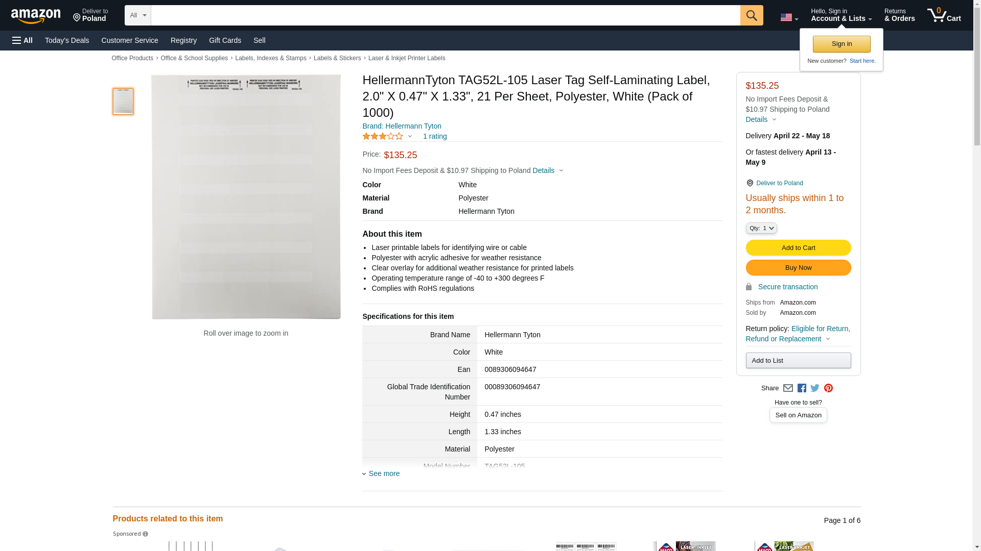 HellermannTyton TAG52L-105 Laser Tag Self-Laminating Label, 2.0" X 0.47" X 1.33", 21 Per Sheet, Polyester, White (Pack of 1000)
