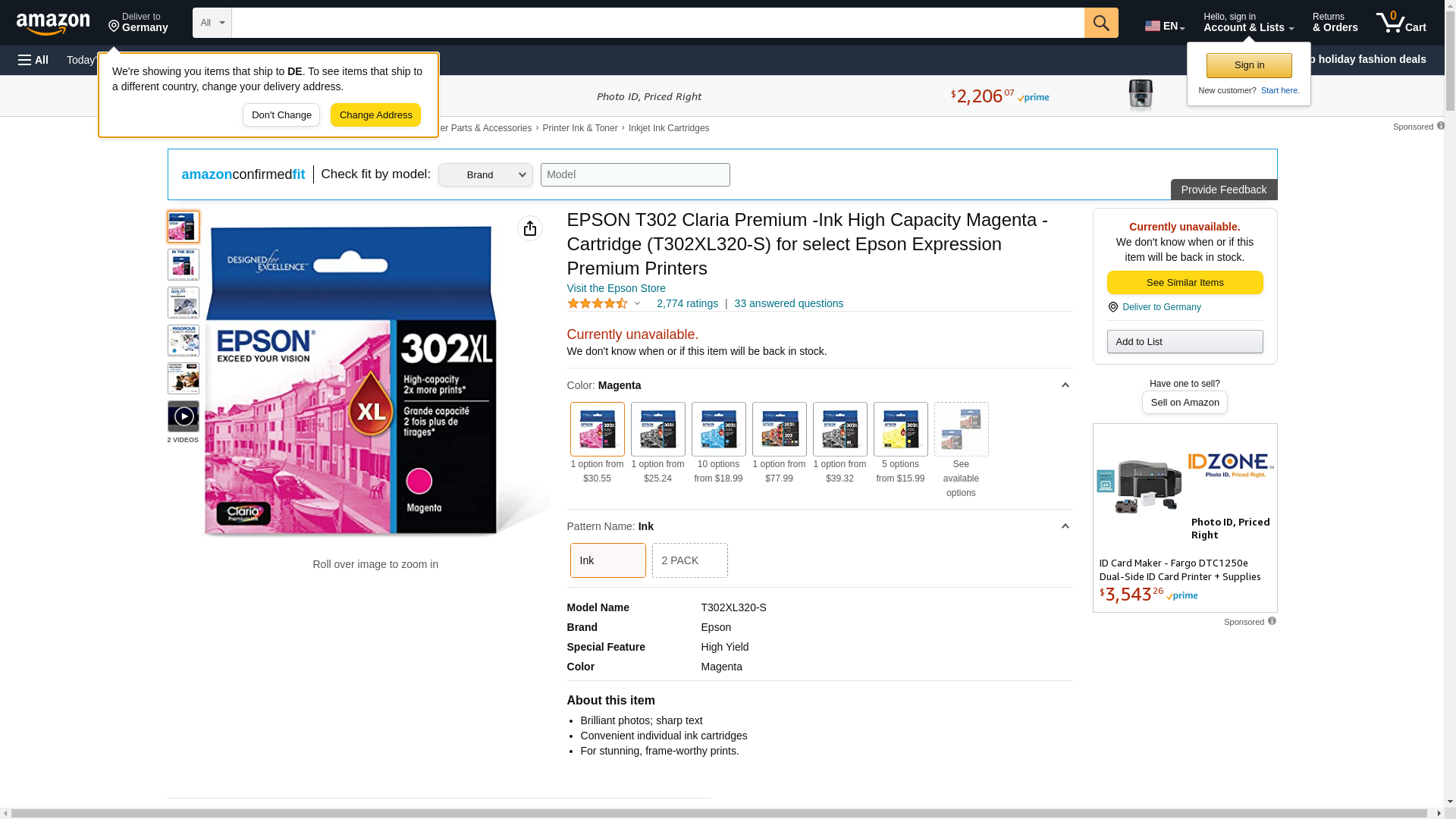 EPSON 302 Claria Premium Ink High Capacity Magenta Cartridge (T302XL320-S) Works with Expression Premium XP-6000, XP-6100