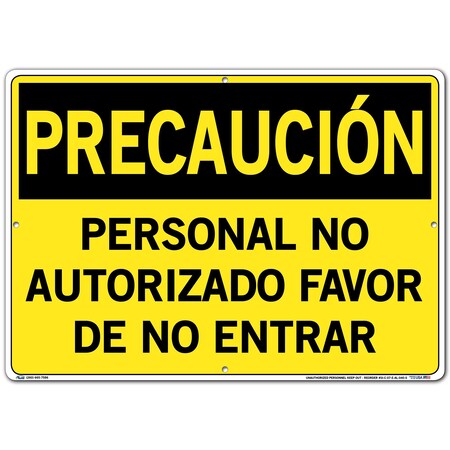 Vestil Caution Sign SI-C-07-E-AL-040-S Aluminum .040" overall size 20.5"W x 14.5"H UNAUTHORIZED PERSONNEL KEEP OUT, PERSONAL NO AUTORIZADO FAVOR DE NO ENTRAR