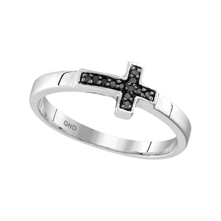 Sterling Silver Womens Round Black Colored Diamond Christian Cross Band Ring 1/20 Cttw