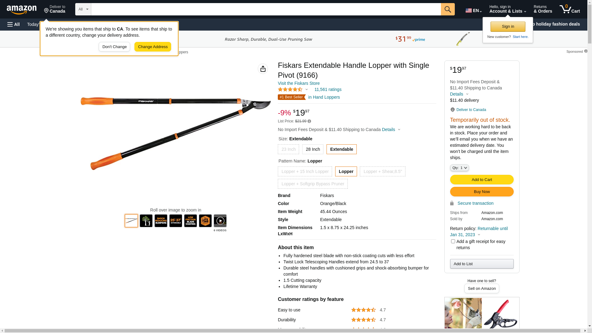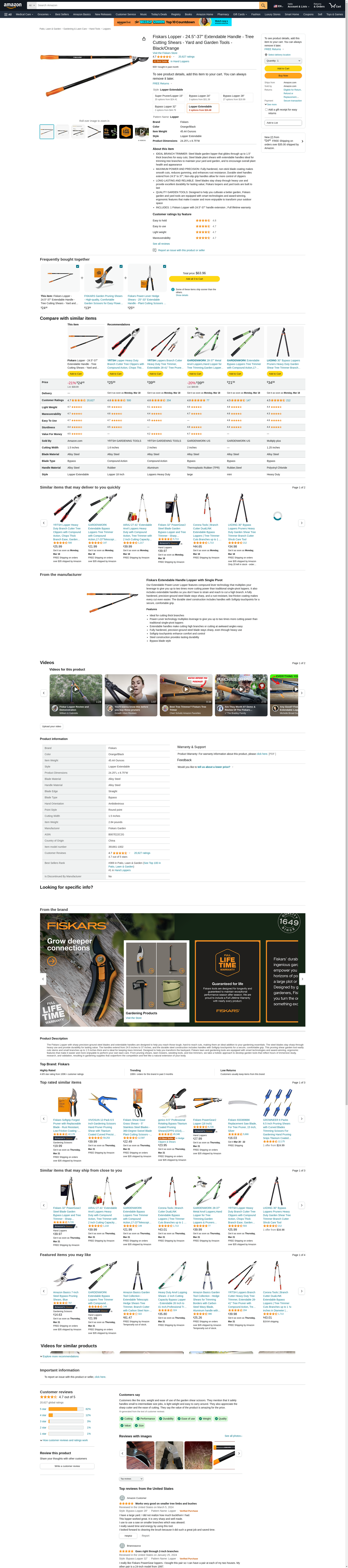 - INCLUDES: 1 Fiskars Lopper with 24.5"-37" handle extension ; Full lifetime warranty