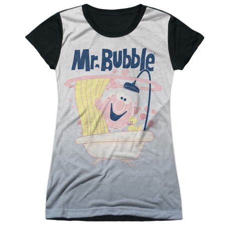 "Mr. Bubble 1960's Soap Retro Bubble in the Shower Juniors Black Back T-Shirt Tee"