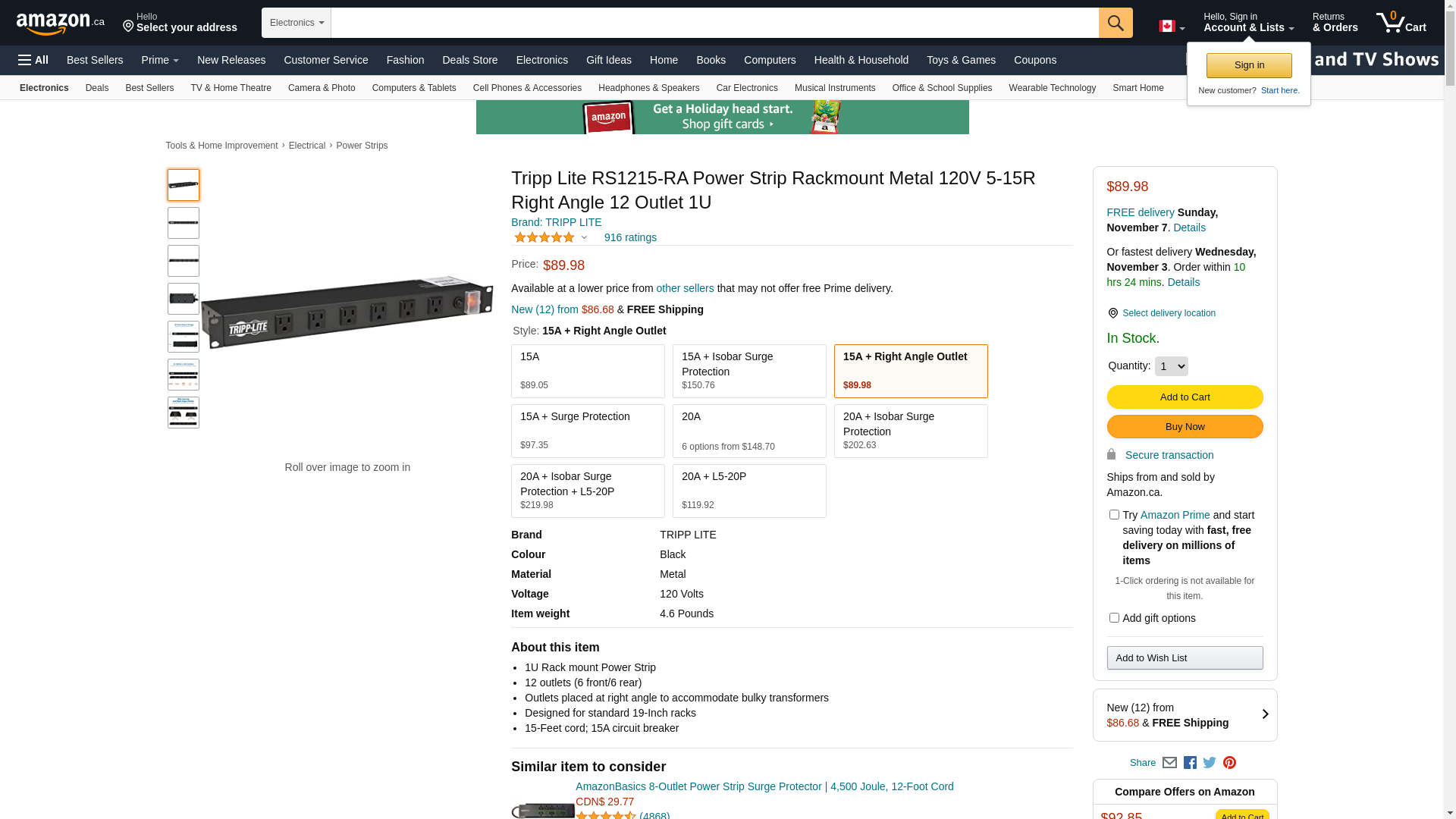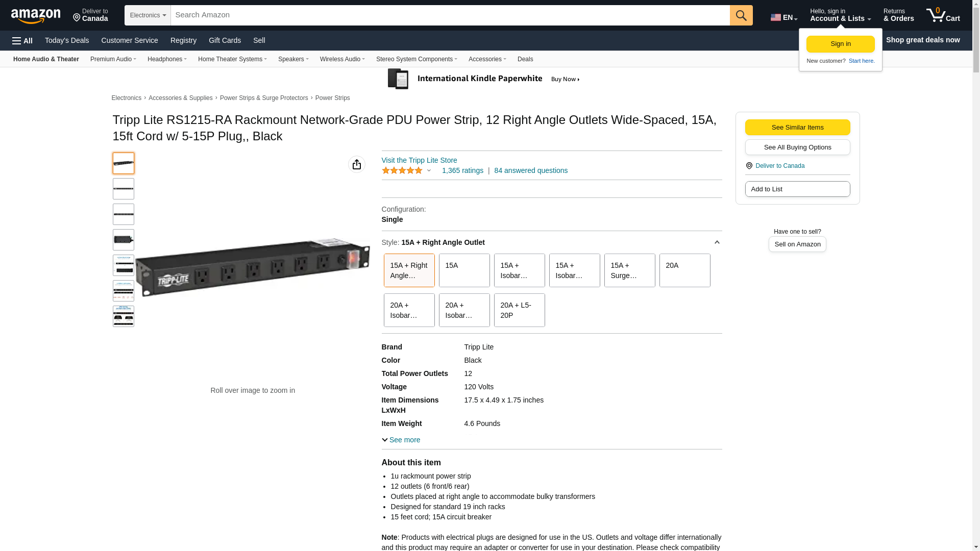 Buy Tripp Lite 12-Outlet Rackmount PDU Power Strip, Six Front & Six Rear Facing Outlets, 15A, 120V, 15ft Cord with Right-Angle Plug, Horizontal 1U Rack Mount, Lifetime Manufacturer's Warranty (RS1215-RA): Electronics - Amazon.com ? FREE DELIVERY possible on eligible purchases